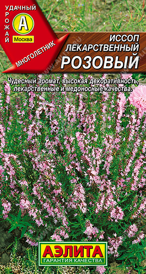 Популярная многолетняя пряно-ароматическая культура. Ценится за приятный, интенсивный аромат, высокую декоративность, а также за лекарственные и медоносные качества. Сорт раннеспелый, с момента весеннего отрастания до начала цветения 80-85 дней. Формирует плотный куст высотой около 50 см. Вредителями и болезнями практически не поражается, зимует без укрытия. Листья и молодые побеги используют в свежем и сушеном виде в качестве приправы к разнообразным блюдам. Эфирное масло иссопа обладает антимикробным и противовирусным действием.