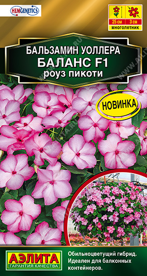 Уникальная серия бальзаминов «Баланс F1» – это настоящая сказка у вас дома, словно облако разноцветных бабочек! Гибриды от компании Hem Genetics (Нидерланды) отличаются ранним и обильным цветением. Нежные цветки диаметром 2-3 см не опадают длительное время. Кустики высотой 15-25 см, компактные, хорошо разветвленные. Бальзамин неприхотлив. При недостатке освещения цветение не ослабевает, а стебли не вытягиваются в длину. Растения идеально подходят для высадки в балконные контейнеры, для украшения низкорослых клумб и окаймления садовых дорожек.