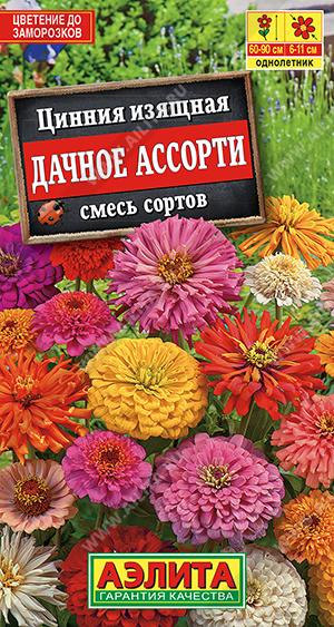 Замечательная смесь высокорослых цинний с разнообразной формой соцветий. Кусты прочные, высотой от 60-70 см и выше. Соцветия диаметром 6-11 см, различных окрасок и разной степени махровости, не выгорают на солнце. Цветение начинается уже в июне и продолжается до заморозков. Каждый цветок находится в роспуске около месяца. Растения хорошо противостоят непогоде, жаростойкие, засухоустойчивые. Украсят собой цветники, палисадники, прекрасно смотрятся в групповых посадках на клумбах и вдоль дорожек. Срезка долго сохраняют в воде свежесть и красоту.