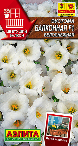 Балконная эустома, с изумительными по красоте нежными цветками, в средней полосе чаще выращивается в качестве однолетника. Компактная, низкорослая, высотой 20-30 см, хорошо ветвится, не перерастает и не требует формирования. Цветение начинается со второй половины лета, когда распускаются крупные розовидные цветки диаметром 5-7 см. Эустома хорошо растет в горшках и балконных ящиках, прекрасно смотрится в садовых вазонах. Осенью у растений обрезают побеги на 2/3 длины и помещают в теплое и светлое помещение, где при создании оптимальных условий они зацветут повторно. Для выращивания одного растения требуется горшок диаметром 20 см.