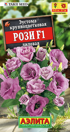 Потрясающе нарядная, генетически низкорослая эустома японской компании TAKII SEED! Крупные, ? до 7 см, махровые цветки фантастически смотрятся на невысоких (20-25 см) кустиках. Растения отлично ветвятся, не требуя прищипки. Цветение очень дли тельное, бутоны формируются и распускаются постепенно. В доме эустома может жить 2-3 года, в открытом грунте ее выращивают как однолетник. Первые месяцы растения развиваются крайне медленно. Они не любят травм корневой системы (предпочтительна перевалка, а не пикировка). Уход состоит в своевременных поливах, подкормках и, при горшечной культуре, перевалке в более просторную емкость. Лучше всего растения цветут в легком, рыхлом, воздухопроницаемом грунте с нейтральной реакцией рН.