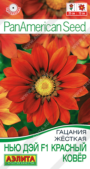 Гибридная серия американской селекции «Нью Дэй» (New Day F1) создавалась с целью получения коренастых и компактных гацаний с более короткими цветоносами и крупными соцветиями, чем у конкурентов. Каждое растение представляет собой аккуратный и гармоничный кустик высотой 20-25 см и шириной 15-20 см. Диаметр корзинок достигает 10-12 см. Цветение очень равномерное и достаточно обильное. Гибрид исключительно солнцелюбивый, засухоустойчивый. Хорошо подходит для оформления жарких, засушливых уголков сада и солнечных балконов.