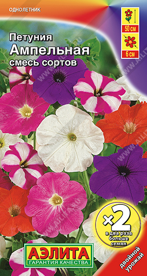 Смесь обильно цветущих петуний с длинными (около 50 см) свисающими побегами. Цветки ? 5-6 см украшают растения с мая и до окончания сезона. Растения устойчивы к засухе, жаре, дождю и ветру. Смесь рекомендуется для выращивания в балконных ящиках, подвесных корзинах и кашпо. Подходит для ковровых посадок в садовых цветниках.