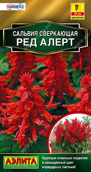 Настоящий хит голландской селекции от компании Hem Genetics для истинных ценителей лучших сортов сальвии! Любимая садоводами культура теперь обрела по-настоящему крупные, плотные соцветия, сохраняющие глубину оттенка и декоративность длительное время, словно огненно-алые факелы. Цветение раннее и дружное. Кустики высотой 30-35 см, аккуратной, компактной формы, быстро растут. Листья глубокого изумрудного оттенка, формируют очаровательную пушистую «юбочку», подчеркивая уникальную яркость соцветий. Сорт используют в составе среднерослых цветочных композиций, миксбордеров, а также сольных групповых посадок. Сальвия Ред Алерт – удачный выбор для оформления потрясающих своей выразительностью садовых вазонов и контейнеров.