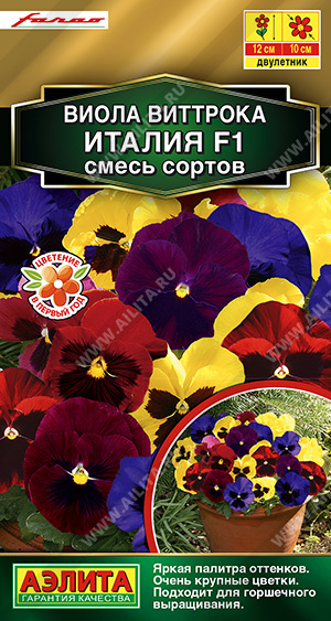Потрясающая воображение палитра контрастных оттенков воплотилась в смеси виолы итальянской селекции компании Farao. Особенно крупные цветки диаметром 7-10 см, щедро украшают крепкие кустики вплоть до устойчивых осенних заморозков. Высота растений около 9-12 см, они отличаются хорошим боковым ветвлением и зацветают уже к концу весны. Смесь не требовательна к уходу, устойчива к похолоданию, легко переносит пересадку. Послужит украшением клумб и рабаток, садовых и балконных контейнеров.
