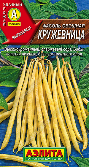 Вьющийся, спаржевый сорт. Среднеспелый, от всходов до технической спелости лопаток 80-85 дней. Побеги длиной до 200 см, с белыми цветками. Бобы-лопатки сахарные, длиной до 20 см. Молодые бобы используются в кулинарии целиком. Их створки не имеют жесткого пергаментного слоя и волокна. Лучший срок для сбора урожая — спустя 7-10 дней после появления завязей. Урожайность бобов 2,5 кг/м2. При желании сорт можно выращивать на зерно (семена белые, крупные) и в декоративных целях в саду.