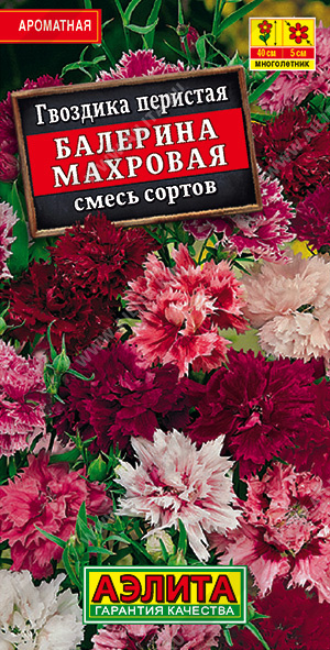 Многолетняя гвоздика с великолепным ароматом. Образует плотные «подушки» высотой 30-40 см. Цветки диаметром 3-5 см, махровые и полумахровые, с бахромчатым краем лепестка. Цветение пышное, обильное. Смесь рекомендуется для выращивания на альпийской горке, в миксбордере, в горшках и балконных контейнерах. Подходит для срезки.