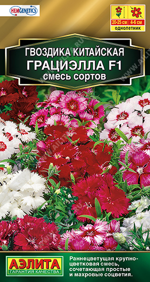 Потрясающе красочная смесь китайской гвоздики голландской селекции от компании Hem Genetics, сочетающая классические простые и махровые соцветия. Она надолго станет украшением вашего сада. Крупные цветки ? 4-6 см сохраняют свежесть и яркость весь сезон! Гибриды отличаются ранним, дружным, обильным и продолжительным цветением. Кус тики крепкие компактные, высотой 20-25 см. Сохраняют форму и устойчивость после дождя и сильного ветра. Гвоздика украсит собой миксбордеры, каменистые горки, станет привлекательным акцентом низкорослых цветочных композиций. Идеально подойдет для высадки в балконные контейнеры или горшки, для окаймления садовых дорожек и небольших водоемов.