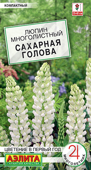 Изящный низкорослый сорт с белоснежными цветками. Соцветия крупные и плотные. Люпин – отличный многолетник для создания эффектных вертикалей в клумбах, миксбордерах и палисадниках. Пышно и длительно цветет, не требуя особенного ухода. Высота растений не превышает 35 см при выращивании в ограниченном объеме грунта, в цветниках – до 40 см. Для посадок подходят солнечные участки, без избытка влаги. В горшках и вазонах объемом 4-6 л размещают не более 1-3 растений. После цветения рекомендуется обрезать старые соцветия, это стимулирует образование новых побегов.