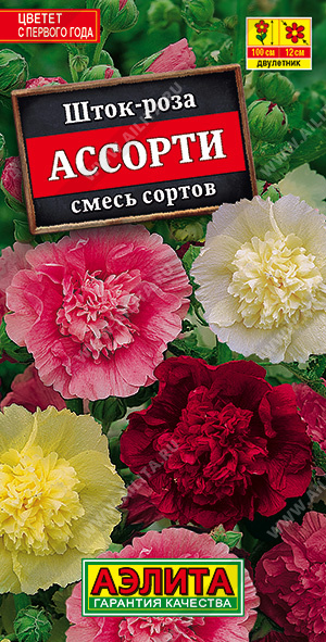 Великолепная смесь сравнительно невысоких шток-роз, цветущих в год посева. Растения компактные, высотой 80-100 см, с хорошим ветвлением от основания куста. Махровые и полумахровые цветки диаметром 10-12 см собраны в вытянутые соцветия-кисти. Смесь используется для оформления рабаток, миксбордеров, декорирования изгородей и стен. Соцветия пригодны для срезки в букеты.