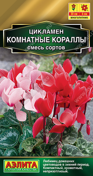 Очаровательная смесь популярного зимнецветущего комнатного растения. В холодную часть года, с конца октября по март, цикламен радует яркими красками и восхитительным ароматом многочисленных изящных цветков. Растения неприхотливые, компактные. Высота во время цветения до 30 см. Цикламены не любят прямых солнечных лучей, поэтому их не следует размещать на окнах южной экспозиции. После цветения надземная часть отмирает и растение переходит в состояние покоя до осени.