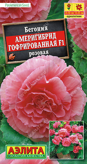 Феноменально крупный цветок! При хорошем уходе достигает 23 см в диаметре! Шедевр селекции. Выведена в американской фирме PanAmerican Seed, которая уже в пятом поколении специализируется на клубневых бегониях. Таким потенциалом крупноцветковости не может похвастаться ни одна из известных серий. Растение имеет кустовой габитус. Высота куста 35-50 см, ширина – 25-30 см. Роскошными густомахровыми цветками в открытом грунте можно любоваться все лето. При выращивании в горшках бегония цветет с апреля по ноябрь. К концу вегетации формируются клубни ? 4-6 см, которые можно сохранить зимой при температуре не выше +10 °С и использовать для посадки в следующем сезоне.