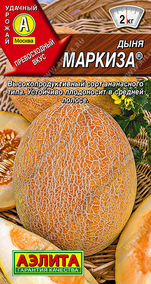 Высокопродуктивный сорт ананасного типа. Среднеспелый, срок созревания первых плодов 90-95 дней. Имеет хорошую по левую устойчивость к комплексу болезней и стабильно плодоносит в средней полосе. Формирует плети длиной около 2 м. Плоды овальные, со сплошным сетчатым рисунком, массой 1,5-2 кг. Мякоть белая, хрустящая, сочная, ароматная, сладкая, деликатесного вкуса. Рекомендуется использовать в свежем виде как десерт, для приготовления повидла и цукатов. Плоды сохраняют товарные качества в течение 20-30 дней после съема.