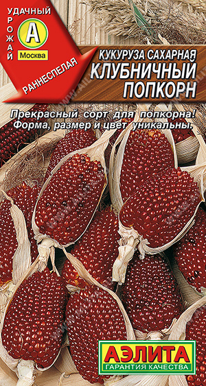 Редкий сорт кукурузы, признанный одним из лучших для изготовления попкорна. По срокам созревания раннеспелый, от всходов до начала уборки початков 81-90 дней. Растения высотой 1,2-1,7 м, весьма декоративны и подходят даже для небольшого сада или крупных контейнеров. Початки длиной до 8 см, по форме и цвету похожи на ягоды крупной земляники. Убирают их в стадии полной зрелости, после чего досушивают. Сорт неприхотливый, быстро и с успехом растет в средней полосе. Срезанные стебли с початками могут долгое время украшать интерьер, а потом, при необходимости, зерна из них можно использовать по прямому назначению.