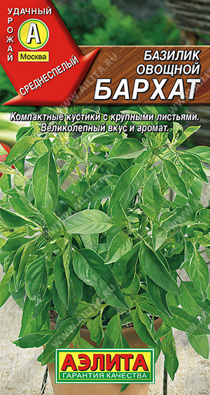 Ценный среднеспелый сорт с великолепным ароматом зелени. Растения хорошо облиственные, компактные, к началу потребительской годности высотой около 25-30 см. Темно-зеленые листья имеют неповторимый пряный вкус. Они богаты витаминами и обладают тонизирующими свойствами. Используются в кулинарии для потребления в свежем виде, сушки, замораживания, маринования, для ароматизации уксуса, масла, напитков.