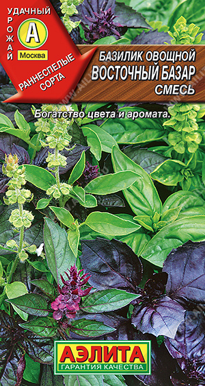Великолепная смесь базиликов с различными ароматами, цветом и формой листьев. Включает сорта: Аромат корицы®, Грезы султана, Ереванский®, Лимонное чудо®. Урожай растительной массы формируется в ранние сроки, за 35-45 дней от всходов. Душистая зелень используется в кулинарии в свежем, сушеном и замороженном виде. Листья и молодые веточки базилика отлично сочетаются со всеми овощами в салатах, придают тонкий вкус и приятный аромат томатному соку, обогащают вкусовой букет сезонных домашних заготовок. Смесь будет хорошо расти в горшках на балконе или подоконнике.