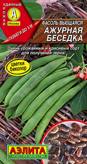 Позднеспелый сорт фасоли для получения зерна. Кусты очень декоративны: плети длиной до 3 м со множеством ярких цветков. На растении формируется большое количество стручков, длиной до 20 см. Семена у сорта очень красивые – коричневые со светлыми вкраплениями. Зерно фасоли очень питательно и богато белком и микроэлементами. Используется в домашней кулинарии для приготовления первых и вторых блюд, консервирования и замораживания.
