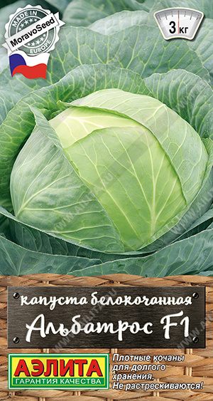 Поздний гибрид капусты для длительного хранения от чешской компании MoravoSeed. Кочаны массой 2,5-3 кг, плоско-округлые, плотные, среднего размера, устойчивые к растрескиванию. Внутренняя кочерыга небольшая. Урожай созревает через 140-150 дней после высадки рассады. Гибрид выгодно отличается от конкурентов исключительными вкусовыми и товарными качествами.