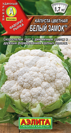 Дружное формирование головок, отличный вкус и длительное хранение оправдывают статус фаворита рынка. Скороспелый сорт: за 90 дней от всходов формирует плотное, крупное соцветие массой до 1,7 кг. Головка округлая, непокрытая, среднебугристая, белоснежная. Сравнительно устойчива к пожелтению и лиловению. Растения устойчивы к резким перепадам дневных и ночных температур, активно развиваются. Урожайность достигает 4-5 кг/м2.