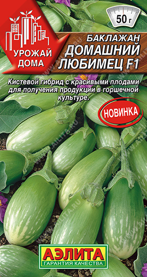 Гибрид с красивыми зелеными баклажанчиками для выращивания в горшках на подоконнике, балконе или лоджии. Техническая спелость наступает через 105-115 дней после появления всходов. Растения компактные, средней высоты, в каждой кисти формируют по 4-5 плодов*. Баклажаны маленькие, глянцевые, очень нежные, без горечи, отлично подходят для запекания и цельноплодного консервирования. Гибрид можно выращивать в о/г и в теплице (при этом высота куста и урожайность будут выше).