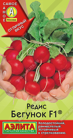 Классический раннеспелый гибрид с яркими округлыми корнеплодами слабоострого вкуса. Отличается холодостойкостью, устойчивостью к стрелкованию. Розетка листьев прямостоячая, компактная. Урожай аппетитного редиса созревает через 20 дней после появления всходов. Корнеплоды среднего размера, однородной формы, массой около 25 г. Мякоть белоснежная, плотная, сочная, хрустящая. Урожайность стабильная – 2,5 кг/ м2.