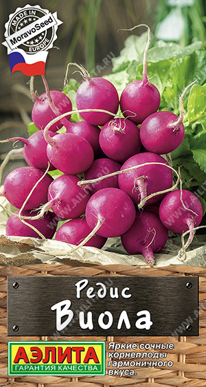 Крупноплодный редис для выращивания качественной продукции круглый год. Сорт относится к чешской селекции компании MoravoSeed. Созревание урожая дружное, спустя 35-38 дней после появления всходов. Корнеплоды ярко-пурпурного оттенка, округлые, выровненные по форме и размеру, массой 20-22 г. Не растрескиваются. Мякоть белоснежная, не дряблеет, сочная, плотная и нежная, гармоничного вкуса. Сорт не стрелкуется, неприхотливый, пластичен к условиям выращивания. Урожайность 1,8-2,2 кг/м2.