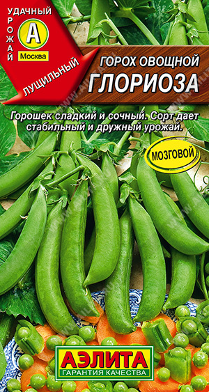 Среднеспелый лущильный сорт с дружной отдачей урожая. От всходов до технической спелости горошка 56-57 дней. Растения высотой 60-65 см. Бобы длиной 7-8 см, с 6-8 горошинами. Горошек в стадии потребительской (молочно-восковой) спелости сладкий, сочный и нежный, в полной спелости - морщинистый, мозговой. Урожайность зеленого горошка более 0,6 кг/м2.