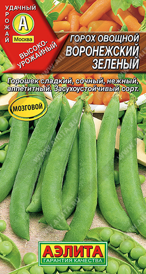 Скороспелый лущильный («мозговой») сорт. Даёт горошек высшего качества! От всходов до технической спелости 42-54 дня. Растения высотой 50-70 см, дружно формируют по 12-18 крупных бобов. Сорт устойчив к засухе, аскохитозу и белой гнили. Урожайность зеленого горошка 0,9-1,3 кг/м2. В биологической спелости семена морщинистые.