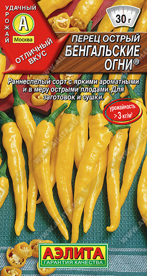 Раннеспелый сорт для домашней кулинарии, маринования и сушки. Отлично плодоносит в открытом и защищенном грунте. Первый урожай созревает спустя 100-105 дней после появления всходов. Перчинки* красивые и ароматные, массой 25-30 г, толщина стенки около 2 мм. При созревании из зеленых становятся ярко-желтыми. Острота умеренная, приятная, гармоничная. Урожайность в теплице высокая – около 2,7-3,2 кг/м 2 .