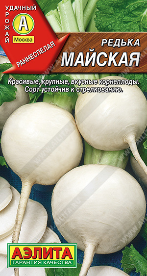 Скороспелый, летний сорт редьки с округлыми белоснежными корнеплодами. От появления всходов до начала уборки 50-60 дней. Корнеплоды гладкие, ровные, массой 80-100 г. Мякоть белая, хрустящая, сочная, нежная, слабоострого вкуса. Сорт неприхотливый, устойчивый к стрелкованию. Предназначен для свежего потребления в салатах и гарнирах. Урожайность 4-5 кг/м2.