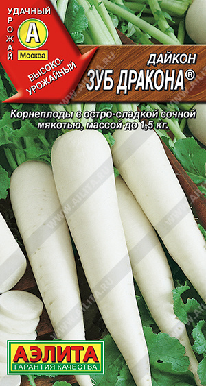 Жаростойкий, устойчивый к цветушности сорт. Уборку длинных и крупных (длиной до 30-40 см и массой до 1-1,5 кг) корнеплодов начинают на 50-65 день после всходов. Мякоть белая, плотная, сочная, хрустящая, с приятным вкусом, без жгучего эффекта. Используется в свежем виде и для различной кулинарной переработки. Сорт подходит для хранения, корнеплоды не дряблеют и долго сохраняют товарный вид. Урожайность высокая – 11-13 кг/м2.