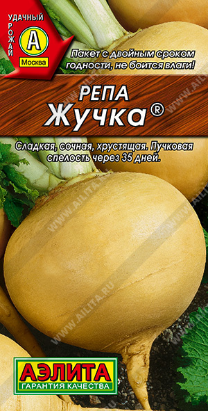 Раннеспелый сорт, который может дать два урожая за сезон. Дружно формирует корнеплоды через 47-55 дней от всходов. Но «похрумкать» классической репкой можно уже через 35-45 дней, при наступлении пучковой спелости. Округлые корнеплоды имеют желтую, сладкую, сочную мякоть. Нежные молоденькие листочки пригодны для салатов. Корнеплоды осеннего урожая массой 120-140 г отлично хранятся. Урожайность 2,5-3 кг/м 2 .